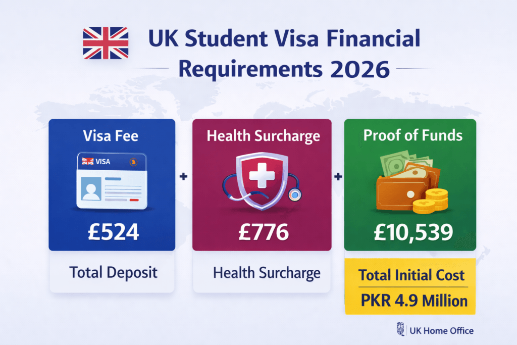 Visa Application Fee: £490 (approx. PKR 175,000).